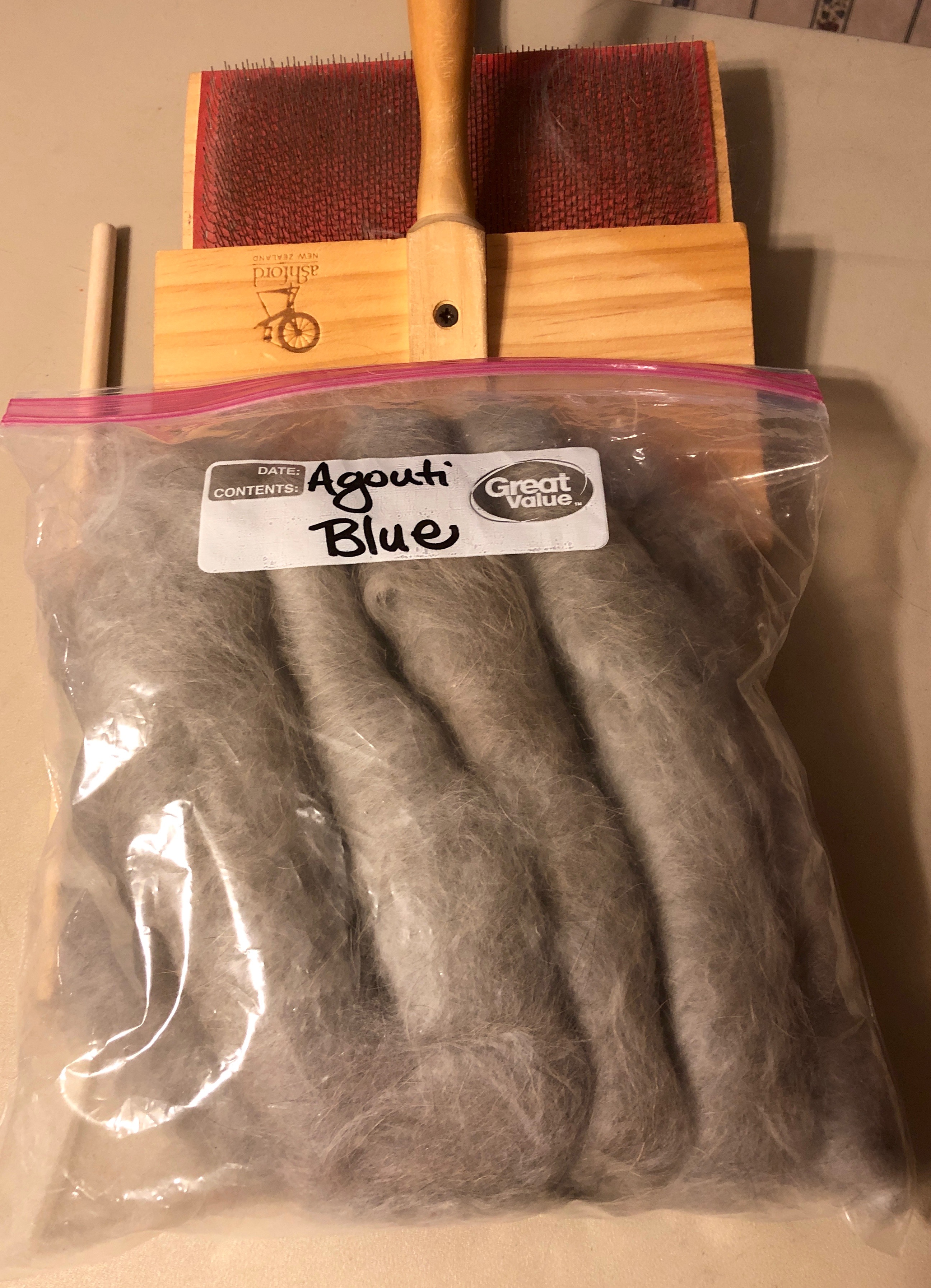 I have about 10 ounces of a beautiful silver/blue angora wool from my agouti blue Angora rabbits. I will be posting pictures and purchase options soon.